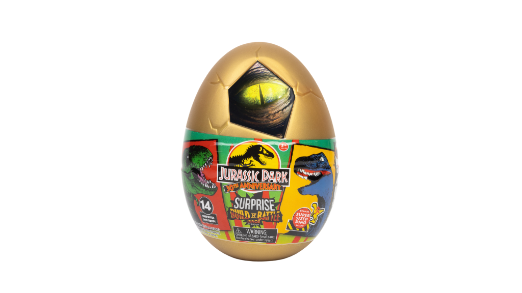 Le dernier, mais pas éteint, est l’œuf surprise du 30e anniversaire de Build N Battle (9,99 $) ! Cet œuf doré de 17,8 cm de haut avec un œil holographique sortant de l’intérieur a 14 surprises, y compris un dinosaure Build N Battle de grande taille, un gel de sève d’ambre, du sable préhistorique, de la boue BioSyn, huit autocollants, un guide de collection et une carte de collection. .